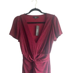 Lulus Dash of Charm Burgundy Short Sleeve Twisted Front Midi Dress Size Medium