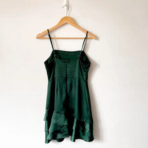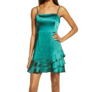Lulus Dreams Come True Emerald Green Satin Ruffled Mini Dress Sz S