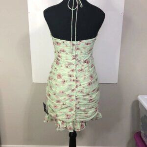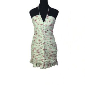 Lulu’s Dress Small Blooming Night Out Light Green Floral Print Ruched Bodycon