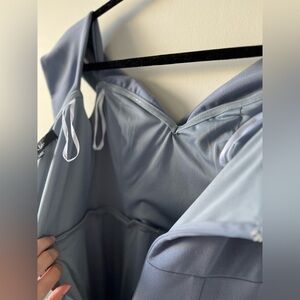 Undergarments: May be worn with a strapless bra, adhesive bra, petals, or no bra.