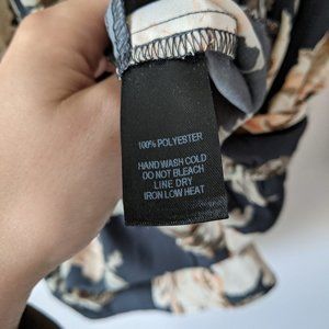 The Lulus Prairie Daydream Washed Navy Blue Floral Print Romper is right at home among the wildflowers! Sleek woven poly, with a pink, cream, and green floral print, forms a surplice bodice (with modesty snap) framed by long sleeves. Elasticized waist tops flirty shorts with diagonal front pockets.