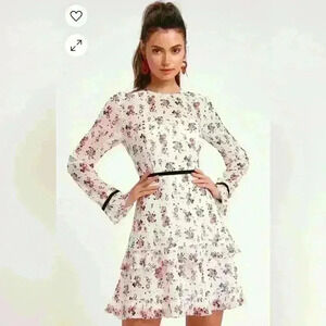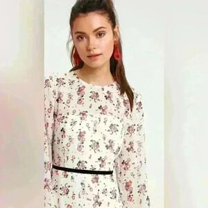 Lulus Floral to See White Floral Print Long Sleeve Mini Dress Short size S