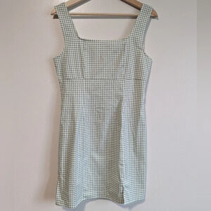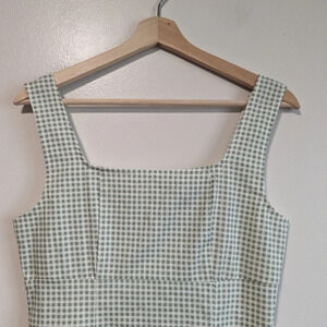 Lulu's Happy Chance Sage Green Gingham Square Neck Mini Dress - Small