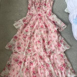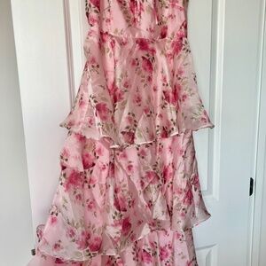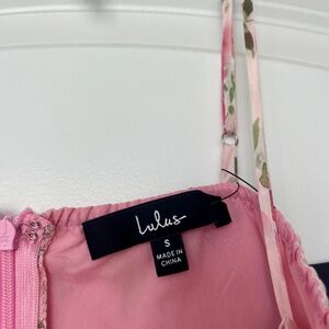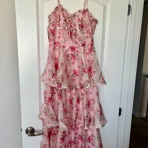 Lulus “Immaculate Cutie” pink floral midi dress.