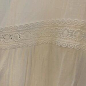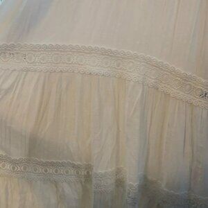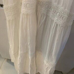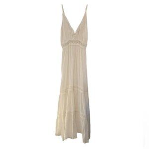 Lulu's Light Breeze White Striped Crochet Lace Tiered Maxi Dress XS