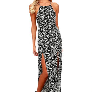 Lulus Lily Jane Black and White Floral Print Maxi Dress Size XS