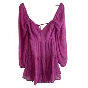 Lulus Longing And Love Pink Swiss Dot Puff Long Sleeve Mini Dress Size M NWT
