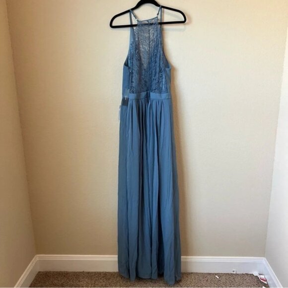 Lulus Love Spell Dusty blue Lace-Back Maxi Dress
