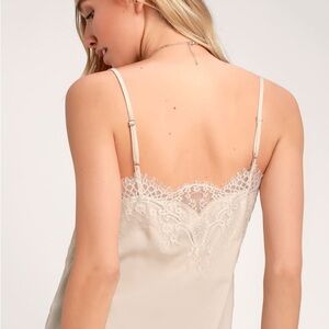 Lulus Maddox Ivory Satin Lace Cami Tank Top Sz M