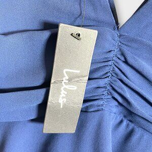 Lulu's Midi Cocktail Party Dress MEDIUM Blue V-neck Tiered Wedding Holiday NEW