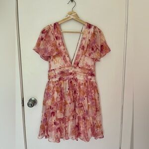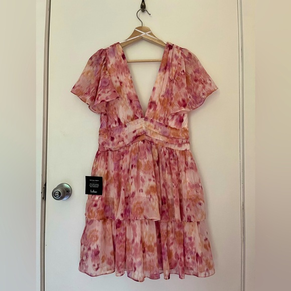 Size M Deep V in front and back Never worn, new with tags Shimmer of silver in the fabric