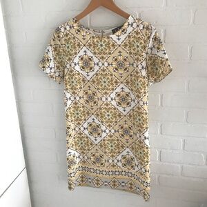 Lulus Mini dress Retro Mod Buttery soft Butter Yellow white Mozaïk print Size XS