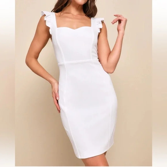 Lulu's Miriam White Ruffled Bodycon Dress