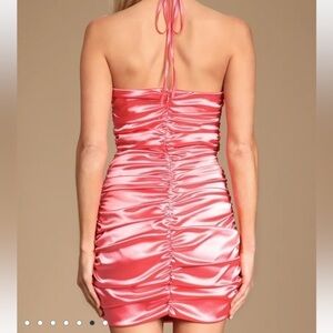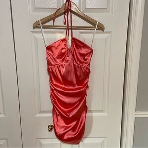 Lulu’s NWT Bring the Prosecco Coral Satin Ruched Halter Bodycon Mini Dress M