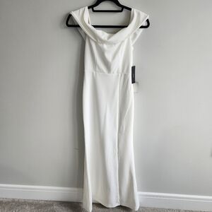 Lulus Off White Formal Grad Prom Off Shoulder Slit Dress Size XS