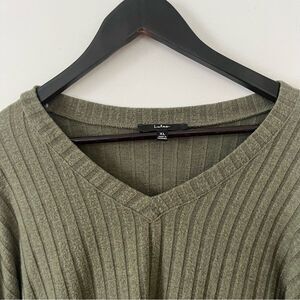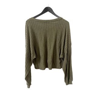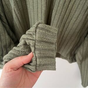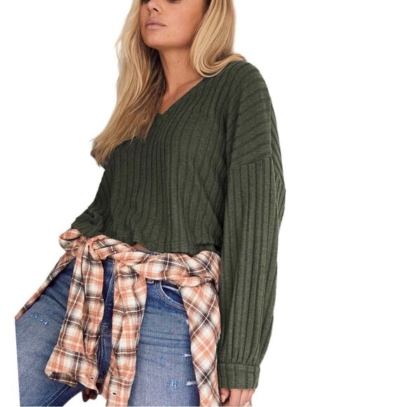 Lulus Olive Green Ribbed V-neck Crop Sweater Top