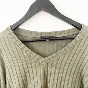 Lulus Exclusive! Rain or shine, the Lulus Style Forecast Olive Green Ribbed Sweater Top has you covered! Lightweight but cozy ribbed knit, with stripes of fuzzy knit throughout, shapes this cute sweater top that has a V-neckline, long sleeves with drop shoulders and fitted cuffs, and a wide-cut, slightly cropped bodice. Pair with your favorite ankle booties and dark wash jeans for a look that will set the trend!