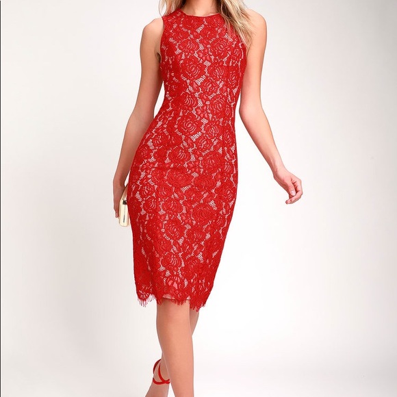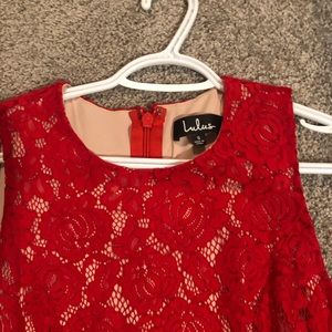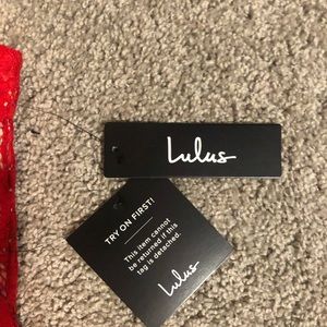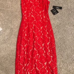 Brand new Lulus Red lace- elegant gorgeous cocktail party dress. Fully lined. It’s small for me that is why I’m selling it.
