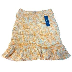 🆕Lulus - Ruche Toward Spring Orange Floral Print Ruched Mini Skirt