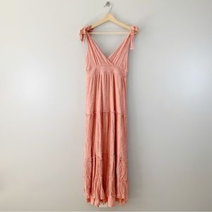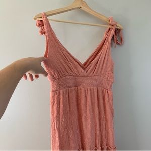 Lulus Sensationally Sweet Rusty Rose Tie-Strap Swiss Dot Maxi Dress Size Small S