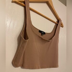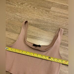 Embrace a chic and modern look with this beautiful tank top. This stylish piece features a flattering fitted design and a cropped length, perfect for pairing with high-waisted bottoms. The soft, stretchy fabric ensures comfort and ease of movement, making it an ideal choice for casual outings. It’s in the size XL. But could probably fit also a size large or smaller depending on how you like the fit of your tops.