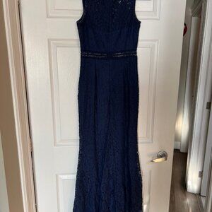 Absolutely beautiful navy floor length gown with textured bodice and a cutout around the midsection