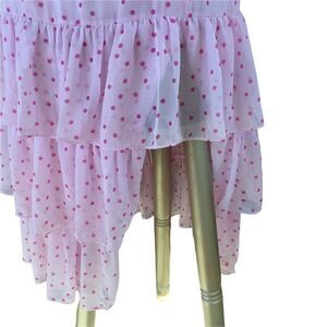 MIdi length tiered with polka dots, split hem on left side to thigh, lined, spaghetti straps, back zipper