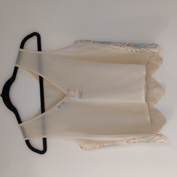Never worn. I've listed it as NWT because although the only tag attached is the extra sequins, you couldn't keep those on to wear :)