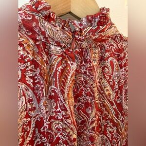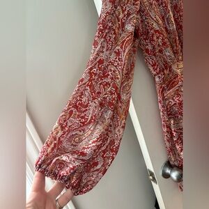 Lulus small rust red paisley mini dress mock neck balloon sleeve wrap skirt