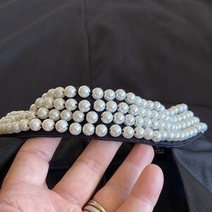 In very good preowned condition beautiful Lulus little black cocktail dress, sleeveless, v-neck, pearl collar, fully lined, back zipper and hook closure.