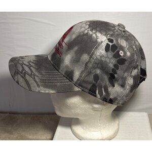This cap features Kryptek camo pattern in shades of gray with an embroidered logo. Adjustable strap ensures a comfortable fit for various head sizes.
