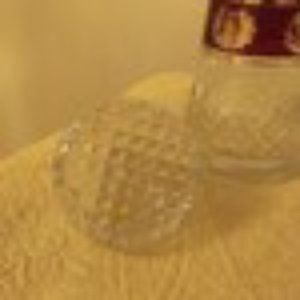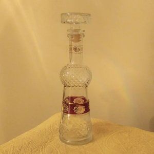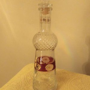 Really pretty French carafe, decanter, sherry barware by Luminarc. It is decorated with a nice burgundy band and gold daisies. The clear glass has a lovely diamond point pattern. The stopper is really pretty too with it's flat top and diamond points. It stands 11 1/2 x 3 1/4 (base) inches. No chips or cracks. Some of the gold is faded, consistent with age. Great condition, please see pictures. Non smoking home.