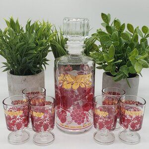 Luminarc France Vintage Gold & Red Fruit Glass Liqueur Decanter Set
