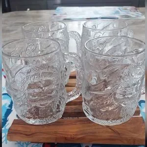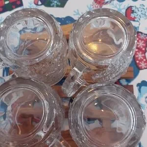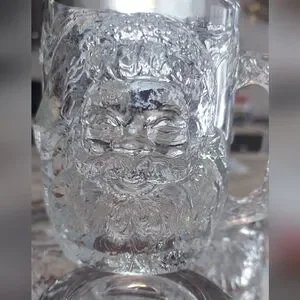 these beautiful made in the USA luminarc vintage crystal Santa mugs are in euc. no cracks breaks or chips. raised Santa 🎅 on one side the other has raised mistletoe. raised design on the handle. would make a great gift for a friend or loved one. enjoy siding by the fire with a cup of delicious coco. get them for the holidays. you will not be disappointed.