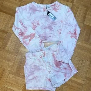 Cute 2 piece set great for lounge wear indoors or out only worn shorts once top brand new with tag. No size on tag but on price tag says small