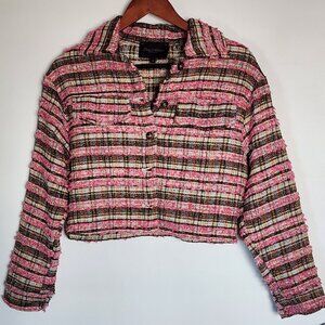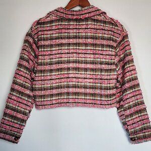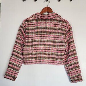 Luna Allegra Italy Pink Tweed Button-Up Cropped Jacket Sz S Classic Summer Coat