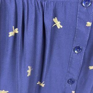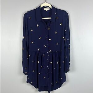 Luna Moon Dragonfly Embroidered Blue Button Down Tunic Size Large