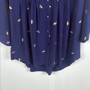 Luna Moon Dragonfly Embroidered Blue Button Down Tunic Size Large