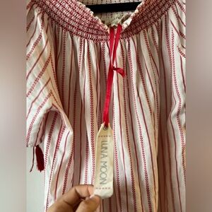 Luna Moon Off-Shoulder Red-White Embroidered Flowers and Tassel Mini Dress