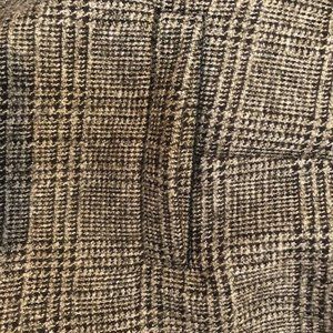 Falls above the knee, comes with a thin belt. Thick and shiny material with a print composed of different brown and grey hues.