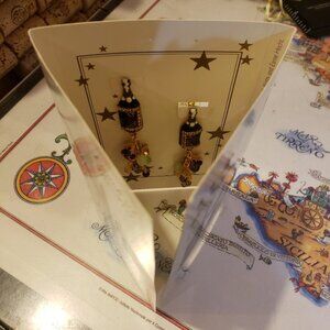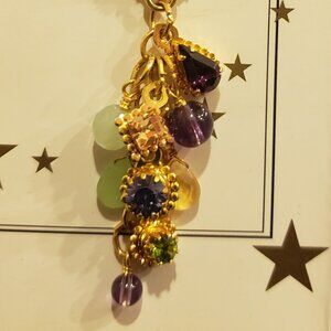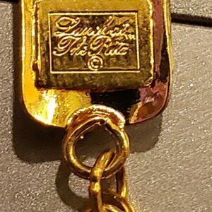 Resins and brass posts, Austrian crystal, Czechoslovakian glass are topped with a thick coating of 24 kt gold tone electroplate.