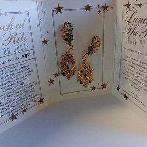Stunning Lunch At The Ritz Seahorse Souffle pierced earrings - 24kt Gold Electroplate & Austrian Crystals & signed.