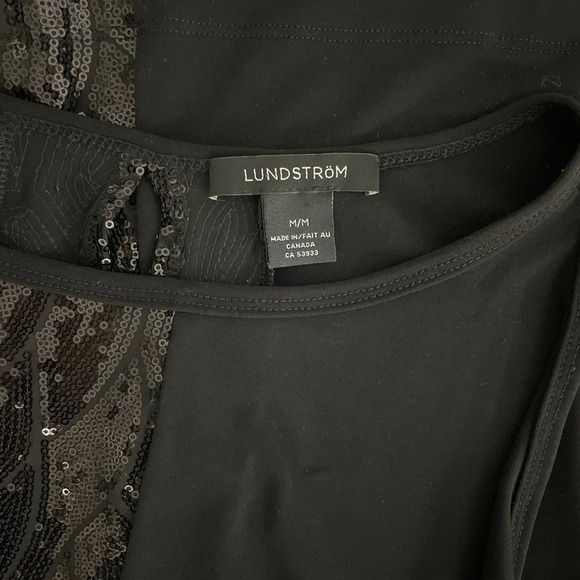 Lundstrom Midi Dress Sequins Cold Shoulder Black Keyhole Size Medium Party