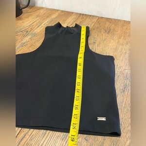 Haut court noir sans manches avec col montant et fermeture éclair au dos. Confectionné dans un tissu extensible et structuré à base de polyamide, coton et élasthanne. Style épuré et moderne, parfait seul ou superposé.