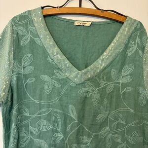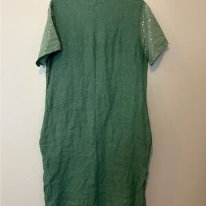 Lungo L’Arno Green Linen Dress | Embroidered Floral Sequins Made in ItalySize S