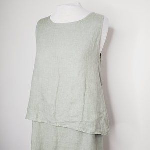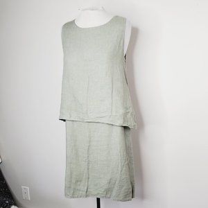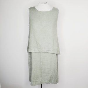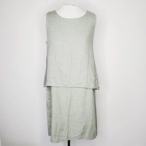 Lungo L'Arno Italy Dress Pure Linen Layered Boho Lagenlook Sage Green L