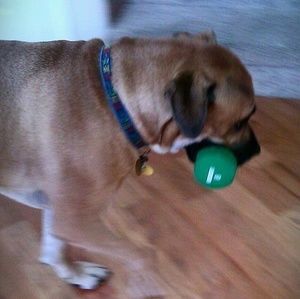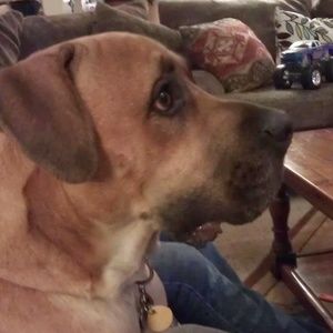 @mmadonna40 hi, thanks! I love him so much. He's a type of Mastiff, a South African Boerboel. I had never heard of the breed when I saw an article about it in a dog magazine. It was love at first site when we got him at 8 weeks old. He's super big, but doesn't know it, loves to snuggle, and unfortunately, drools a lot !! Your rottie sounds just prefect !! You know 85 is still a lot of dog !!