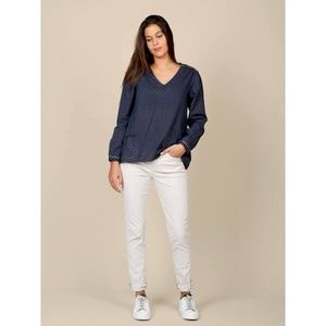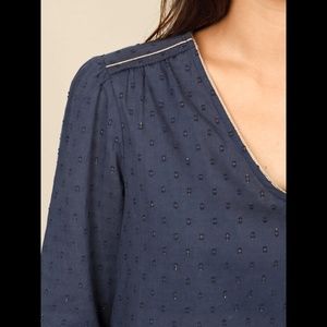 Lurex Details Plumetti V-Neck Navy Blue Shirt