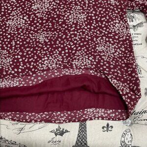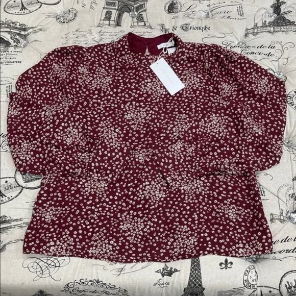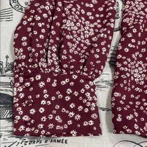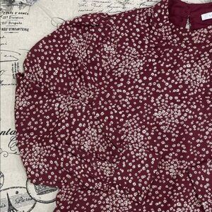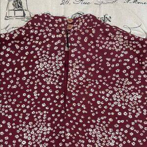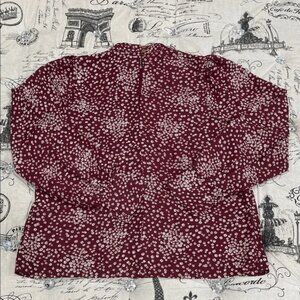 Chic burgundy blouse with floral design. Ideal for versatile styling.