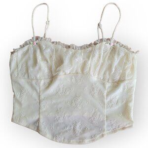 Lush Cream Lace Rosette Camisole Cropped Mesh Feminine Coquette Top Romantic Y2K